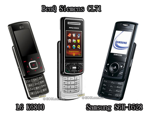 BenQ Siemens、LG KG800、Samsung SGH-D528 三款手機的共同特色除了輕薄之外,機身顏色都以黑色為主色營造高質感,相機畫素都是 130 萬畫素、可當 MP3 Player。較大的不同在於,LG KG800 巧克力機和 Samsung SGH-D528 分別內建 128MB 和 80MB 的動態記憶體,卻無法擴充記憶卡;BenQ Siemens CL71 除了內建 24MB 記憶體之外,還可以擴充 microSD 記憶卡,略勝一籌。