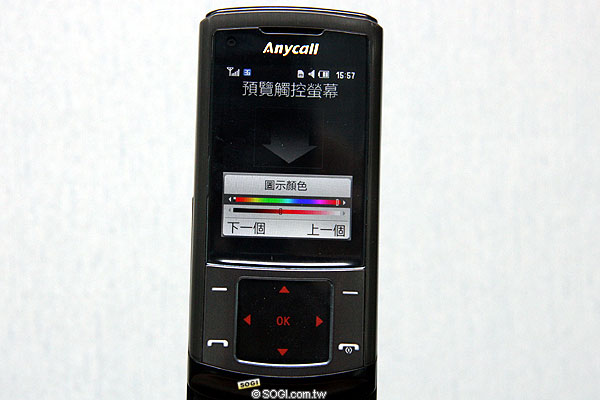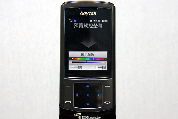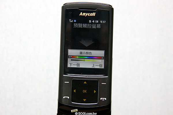 Samsung Soul U908 除了前面提到的「奇幻觸控」介面之外,連螢幕的顏色都可以自行更替,在螢幕設定裡調配喜好的顯示顏色,就像是活生生的調色盤一般,可根據心情和季節來調配,組合可達到數十種以上。