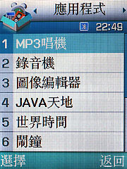 下兩張圖是內部的一些應用程式功能,MP3 播放是一定要的是其他還有 USB 的傳輸埠可以當成隨身碟來用以及外接影像輸出裝置對傳之用,應用面相當的廣。