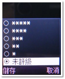 為了使手機更符合個人化的原則,F258 的音樂播放器融入了評等的機制,共有一到五個星等,使用者可隨個人喜好來加以給分。