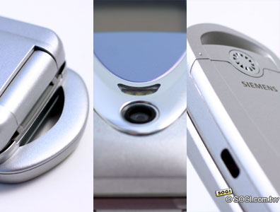 而 Siemens CFX65 的週邊設計,除了環型天線介紹過外,30 萬畫素相機鏡頭就在正前面,鏡頭的上方還有 LED 補光燈,右左側則有一個紅外線埠的設計,所以在傳輸功能上,Siemens CFX65 還是可以充份利用紅外線,之後的照片上傳也是利用紅外線來傳送的。
