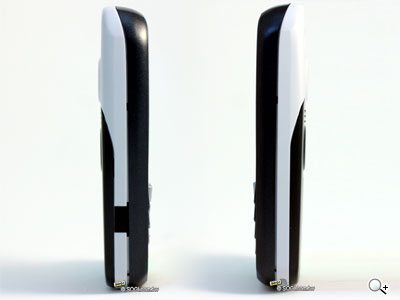 Siemens CXT70 在邊側的設計沒有太多按鈕設計,只有一個紅外線埠,感覺就比較陽春一點。 而在機身正面的上部,有兩個 LED 燈的設計,在來電時會有閃光效果。