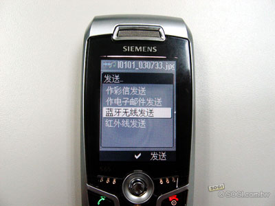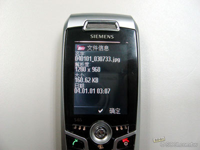Siemens S65的檔案資料可以MMS、E-Mail、藍芽、紅外線進行無線傳輸,多元的傳輸方式讓使用者更能夠自由發揮。