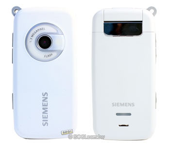 素有純白天翼之稱的 Siemens SF65 一出現在辦公室就引起一票同事的驚呼!獨特的純白外殼相當吸引人之外,打開一看,不論是主螢幕大小、鍵盤的安置、灰色區塊的顏色搭配無不恰到好處;轉到背面一看,相機鏡頭落落大方的嵌在手機背面...