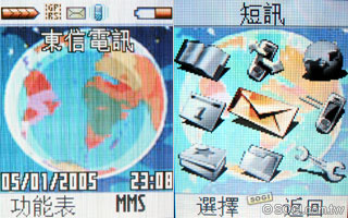 在主螢幕的表現上面,六萬五千色的配置稍微暗淡了一些,而在操作介面上,Siemens SF65 還是一樣延續了 Siemens 傳統的六空格選單;沒有用過 Siemens 手機的人也是可以輕鬆上手的。