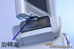 Siemens SF65 最大的設計莫屬於其旋轉式螢幕設計,旋轉式螢幕設計貼切的取代了雙螢幕設計拍照時的任何拍攝角度,將 Siemens SF65 的旋轉螢幕外翻,手機瞬時間成了最佳的數位相機。此外,Siemens SF65 整體機身體積不大,不到百克的重量,握在手中更是輕巧。