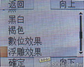 此外,Siemens SF65 的特殊拍攝效果模式豐富,計有變色、浮雕、加框、文字... 等,如此多變的拍攝效果模式可供使用者拍攝出許多不一樣風格的影像,更增加拍攝時的創意與樂趣。