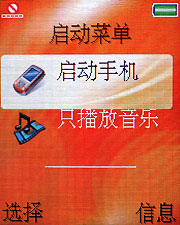 下圖就是開機後 Sony Ericsson W550i 會先問你是否啟動手機或是進入音樂播放介面,上飛機後要小心選哦!!不然會被請下飛機!開機後就會出現右圖的「Walkman」圖示。