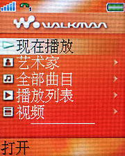 我們長按下機側的「音樂直播鍵」就可以直接在待機畫面直接播放音樂,W800i 也有此項功能。而且按鍵即使是鎖住,也可以破解按鍵鎖直接播放。而其播放的介面也是比一般手機裡的播放器還進階一點,有分類播放清單等。下右圖為影片播放實照。