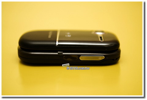 Sony Ericsson Z250i 右側則是一般手機常見的音量調節與SE慣用的紅外線傳輸埠,並且在上放設有手機吊飾孔。