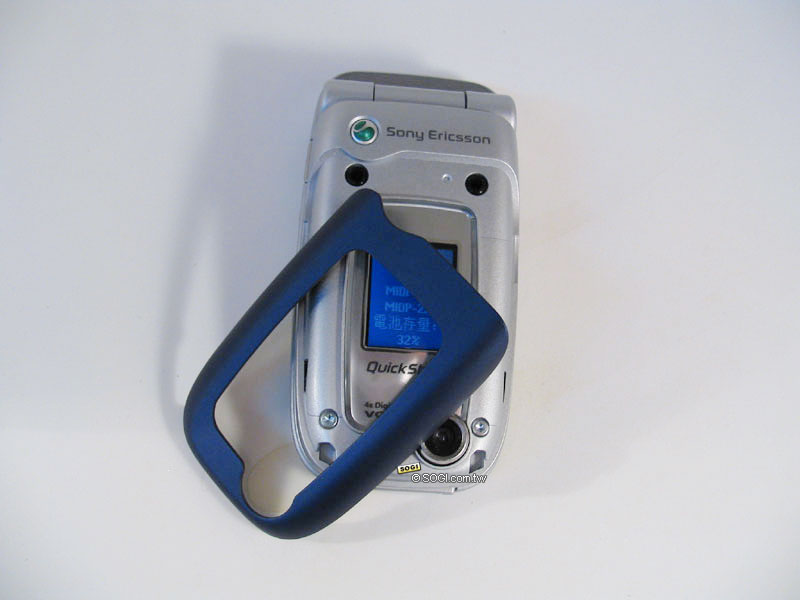 手機的背面正上方處可以很明顯的發現 Sony Ericsson Z520i 的揚聲器設計,雖然喇叭設計在背面很容易影響到音樂的音質表現,不過拜於環型狀天線設計所賜,當手機平躺時,環狀天線讓整個機身與桌面所凹起而不接觸的部分,可以讓音樂的音質保持最佳狀態。