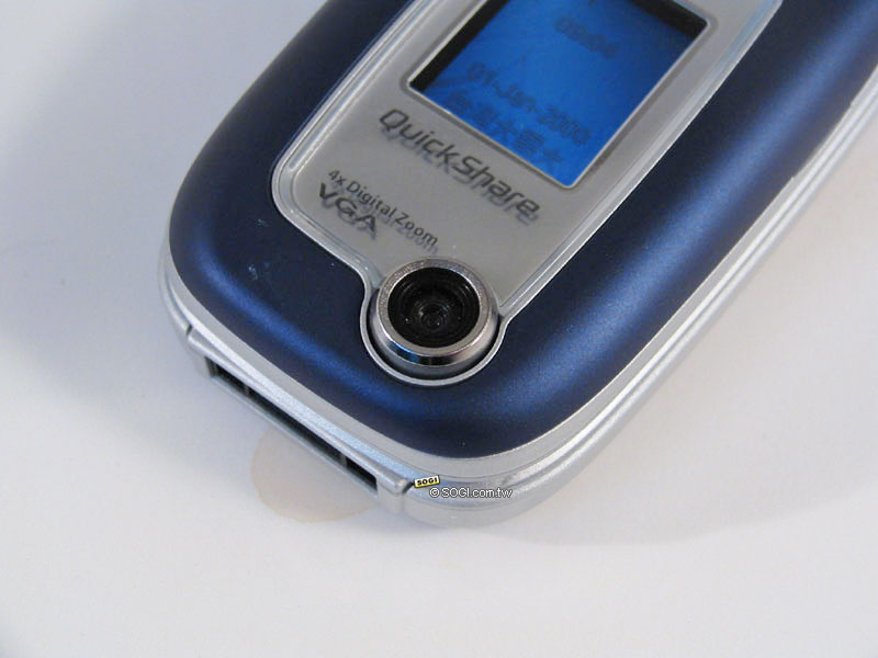 上圖是 Sony Ericsson Z520i 手機的側邊圖,只要長按機身側邊相機快捷鍵,便能立即啟動相機拍攝功能,闔蓋按此鈕,更可以直接外螢幕自拍。在調整鍵的部分,當啟動相機拍攝功能時,此鈕可充當影像的曝光值調整鍵,在播放鈴聲或 MP3 音樂時,則可調整音量大小。另外,Sony Ericsson Z520i 也支援紅外線傳輸。
