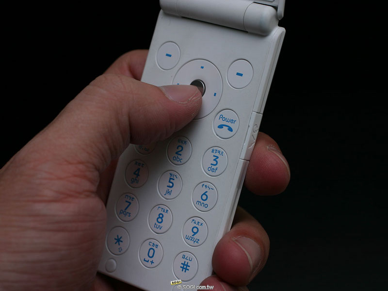 打開 Toshiba TS10 後,其內部設計依然採用了典型的日式風格,圓形的扁平按鍵,與四方向導航鍵都是日系手機的經典設計。以 Toshiba TS10 的外形設計看來,喜歡個性化產品的年輕族群,絕對喜歡 Toshiba TS10 的簡潔設計。