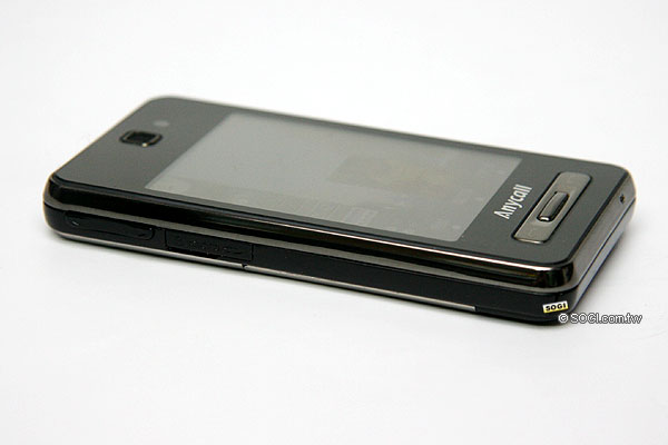 ★ 正面由 2.8 吋的螢幕佔滿了大部分的區域,和以往很多三星手機一樣,螢幕背光暗的時候就變成鏡面。在正面的部份,只有 LOGO 下方的撥出鍵、掛斷鍵和快捷鍵為實體按鍵。