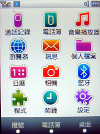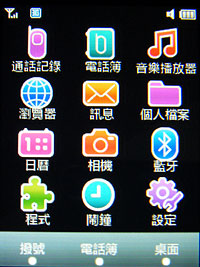 Samsung F488 在桌布左側的 Widget 功能列,可以把全部的功能從左側拉出來使用,一次不限制只能拉一個,並放再螢幕上任何一個角落,也能把全部通通都拉出來疊在一起。用完以後就放回左邊,透過拖拉的方式其實滿順手的,而且還有振動反饋能明顯感受到 Touch 的那一瞬間。只是,有的時候該圖式比較小的話,容易誤按到其他的功能,或者是沒有反應。再來是輸入的部份,沒有支援手寫輸入,只能在觸控螢幕上點選注音符號,SOGI 其實相當不習慣這種方式,估計輸入要上手可能得花上一段時間。(此為主觀認定)