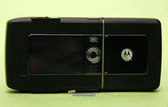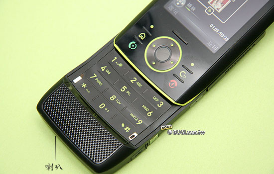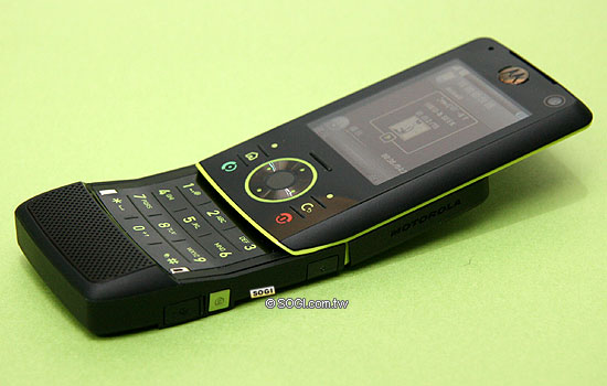 Z8 的機身只有滑蓋滑軌的部份是採用鋁鎂合金材質,其餘黑色的部分看起來是一般的塑料。整個上蓋包涵螢幕的區域和下蓋的數字按鍵區,都是指紋的危險區域,非常容易留下指印在上面。不過,按鍵燈和側面的邊條都是蘋果綠色,整體搭配起來很好看且顯得很年輕。