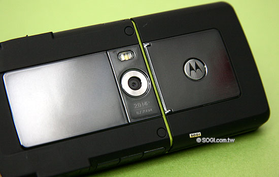 ※ 機身背後中間的一大塊金屬材質,除了是鏡面材質外,也非常容易留下指紋,且發表會上提供的測試機有被刮花的痕跡,使用者應該得小心保護它。而 200 萬畫素相機鏡頭則位於中央的位置,鏡頭上方是具備防紅眼功能的閃光燈。