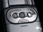 在外部介面的設計,我們看到背面與兩側的各種設計,如上圖及下圖,揚聲器並列在相機組的旁邊,音質還不錯,耳機孔也在機身側。對於這樣的設計,使用者可以很快上手,因為與一般的手機設計相差無幾。而機身的右側則是相機鍵以及 miniSD 卡的插槽。