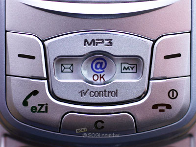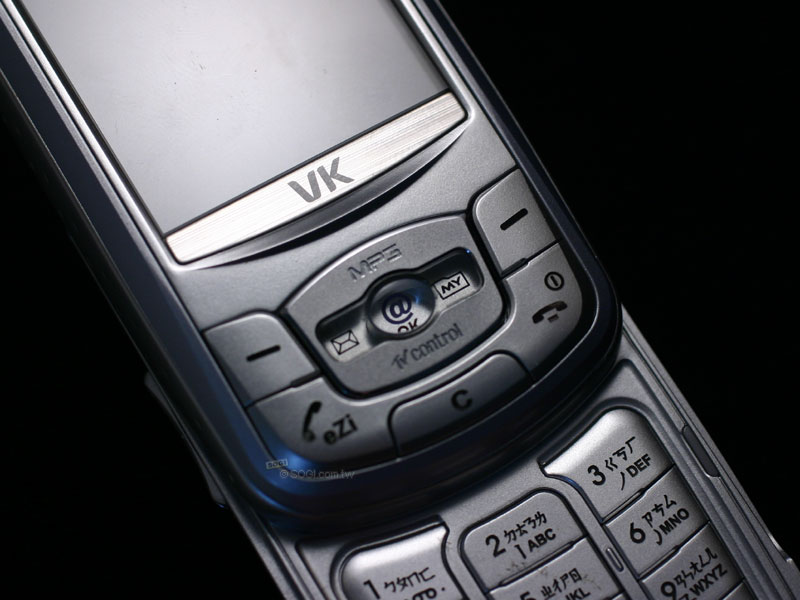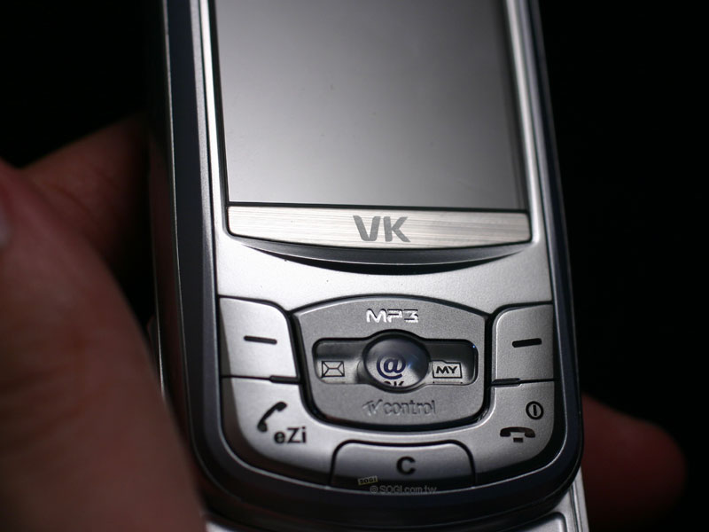 VK 900 的上蓋按鍵裡,除了有通話鍵、結束鍵,中間的五向鍵還各自有不同功用,由下圖可以知道,都把 VK 900 的特異功能都列在上面了,有 MP3 播放器(上)、紅外線搖控器(下)、訊息(左)、捷徑(右)以及快速上網鍵(中)。讓使用者可以快速的進入對應的功能。