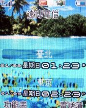 VK 900 可以將待機畫面擁有不同的風情,除了可以設定不同主題之外,還可以自訂靜態的圖片來當桌布,也可以在使用動畫、日曆、時鐘或是文字來放在桌面上,以下右邊兩張圖片即是使用日曆以及兩地時鐘的待機畫面。當然嫌這樣太雜的話,就使用靜態的圖片,用全白的也可以!!想要自行更換桌布,只要在電腦裡將圖片切割成 176 x 220 解析度的圖片大小,放到記憶卡裡再將它叫出來設成背景圖像就好了,不論是你的玉照或是愛人的甜蜜照都大膽的放出來瞧吧!