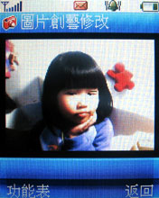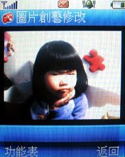 VK 900 的娛樂功能,除了前述的搖控器功能,還有內建的兩款小遊戲,以及下圖的「圖片創藝修改」功能,這有點像是 BenQ 的魔孚變臉的招式,不過不用定四點的位置,但有時要對不到囉!!