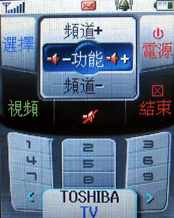 在設定之後,可以在預設搖控器裡找到 TOSHIBA 這筆資料,然後開啟後就可以在螢幕上看到下圖左的畫面,每個按鍵都與實體的手機鍵盤對應,就可以開始操控家裡的電視了,不過不是絕對可以控制,有時會有控不到的情況發生,不過大都滿順利的!