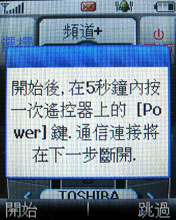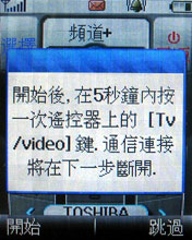 只要開啟搖控器功能後,就可以使用內建的數種家電品牌來直接搖控你家的電器用品,假如沒有在裡頭的話,VK 900 還有學習的功用,只要一步步按照螢幕上的指令來與搖控器對應學習的話,就可以將家電搖控器轉換到手機裡了。如上圖所示,在 COPY 時記得要將兩端的紅外線對準,不然有失誤就要重頭開始了。