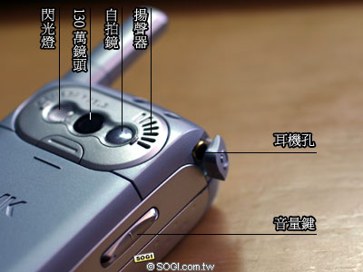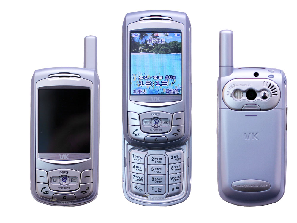 而 VK 900 在外型上,以其在台灣的第一款滑蓋式設計,並在螢幕解析度及操作功能都有長足的進步,待我們後幾頁來體驗一下!!外型上以其滑蓋式的設計,還是比較適合無天線的設計,VK 900 多了個天線就弱了些。但背面的相機設計就滿不錯,閃光燈、鏡頭、自拍鏡排在一起,似乎就像是真的數位相機一樣,現在許多的照相手機都朝向這樣的設計理念!