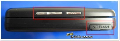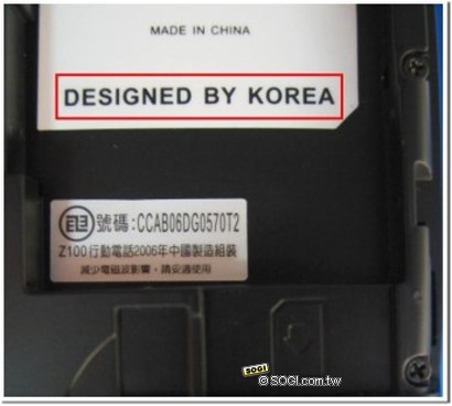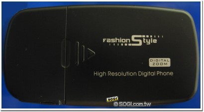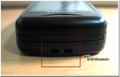 左右兩側分別有外接記憶卡與充電器插座(與傳輸線共用),另外左側還有聲音控制與影音播放機進入鍵,讓使用者可以快速進入,輕鬆播放內建曲目或是影片。採隱藏式天線加上安全的黑色外觀,如果想要添加一些裝飾,上方的手機吊飾孔就成了最重要的主角;在韓國設計團隊操刀下,背面除了〝Fashion Style〞字樣外,打開背蓋取出電池,還可以看到特別強調的〝DESIGNED BY KOREA〞(紅框處),可見其強悍民族性,連小地方都不忘宣揚國威!