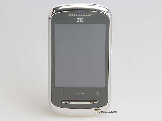 ▲ZTE N600+ CDMA 除了具有「首頁」「選單」「返回」三個虛擬按鍵,還設計了通話與掛斷的實體按鍵,右下角的小孔為收音麥克風。