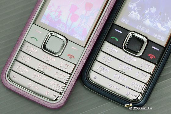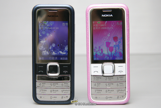 粉紅、深藍二色的 Nokia 7310 Supernova,除了顏色差異之外,另有二個不相同的設計,其一就是在操作鍵區。粉紅色 7310 將操作鍵以銀色裝飾,雖然較無反射效果,但是與鏡面的螢幕、數字鍵一氣喝成。深藍色則改為黑藍色的操作區塊,不走正面統一路線,但是其優點是燈號比較容易辨識。