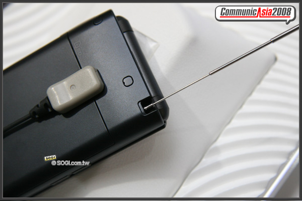 而數位電視不可缺少的所天線,則是從手機後方抽拉而出。當你需要用到數位電視功能時,當然千萬要記得把天線拉出。