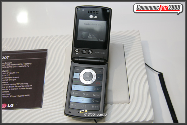 這款外觀看來不甚起眼的,可是LG深藏不露發表的全球第一款支援DVB-T數位電視功能的手機-HB620T。過去大家常常羨慕日本嘗推出免費的數位電視手機,未來等待LG HB620T上市後,台灣民眾也可以有可支援數位電視的手機可以使用了。正面方方正正僅有200萬畫素的相機配備其中。