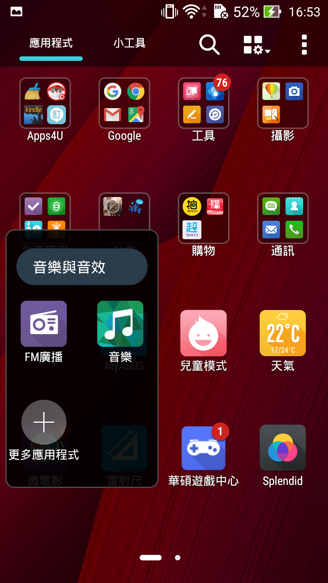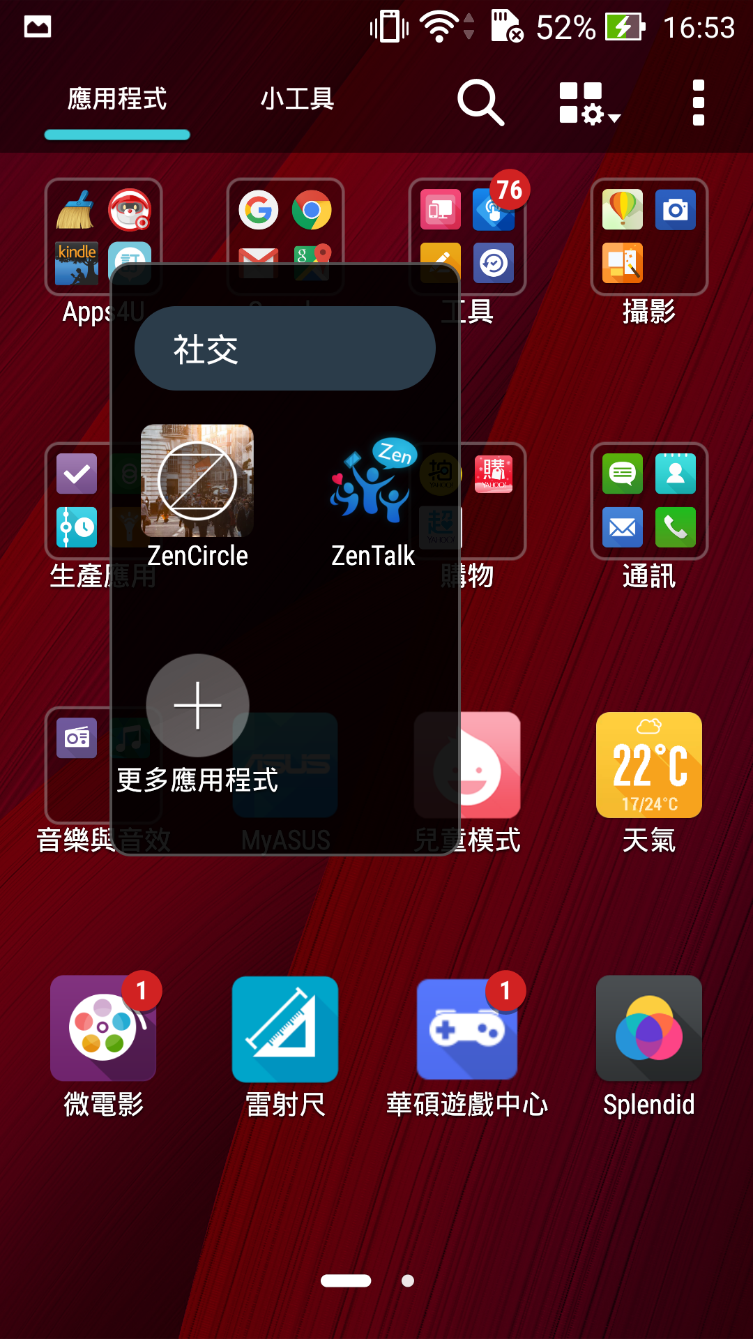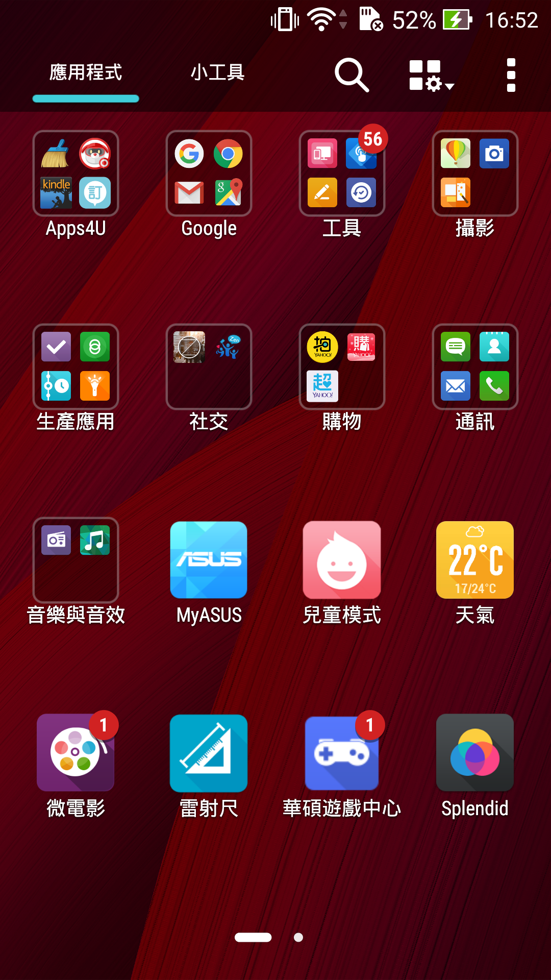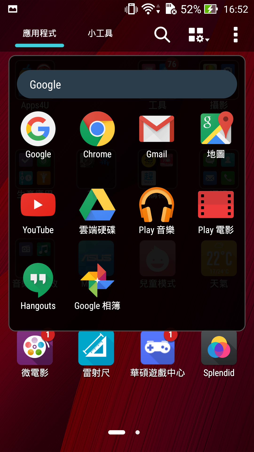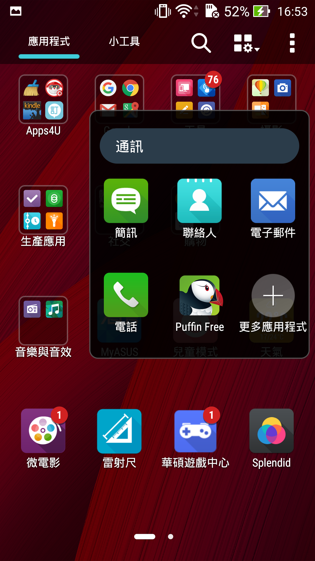 ▲ASUS ZenFone 2 Laser ZE601KL 應用 App 功能表。