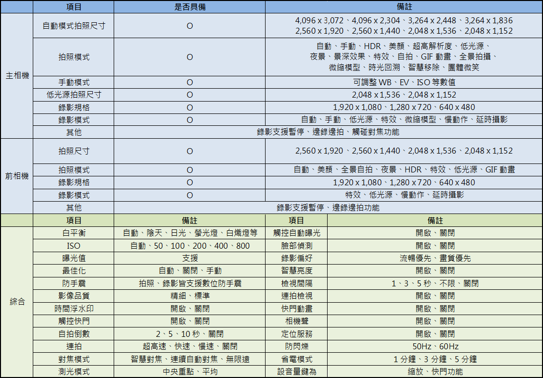 ◎ 500 萬畫素前置鏡頭、F2.0 光圈、85 度廣角