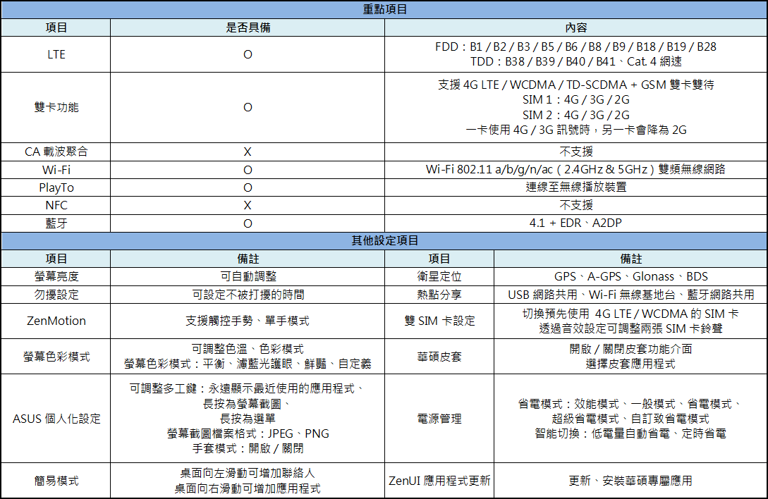 ▲ASUS ZenFone 2 Laser ZE601KL 支援 4G LTE / WCDMA / TD-SCDMA + GSM 雙卡雙待功能。