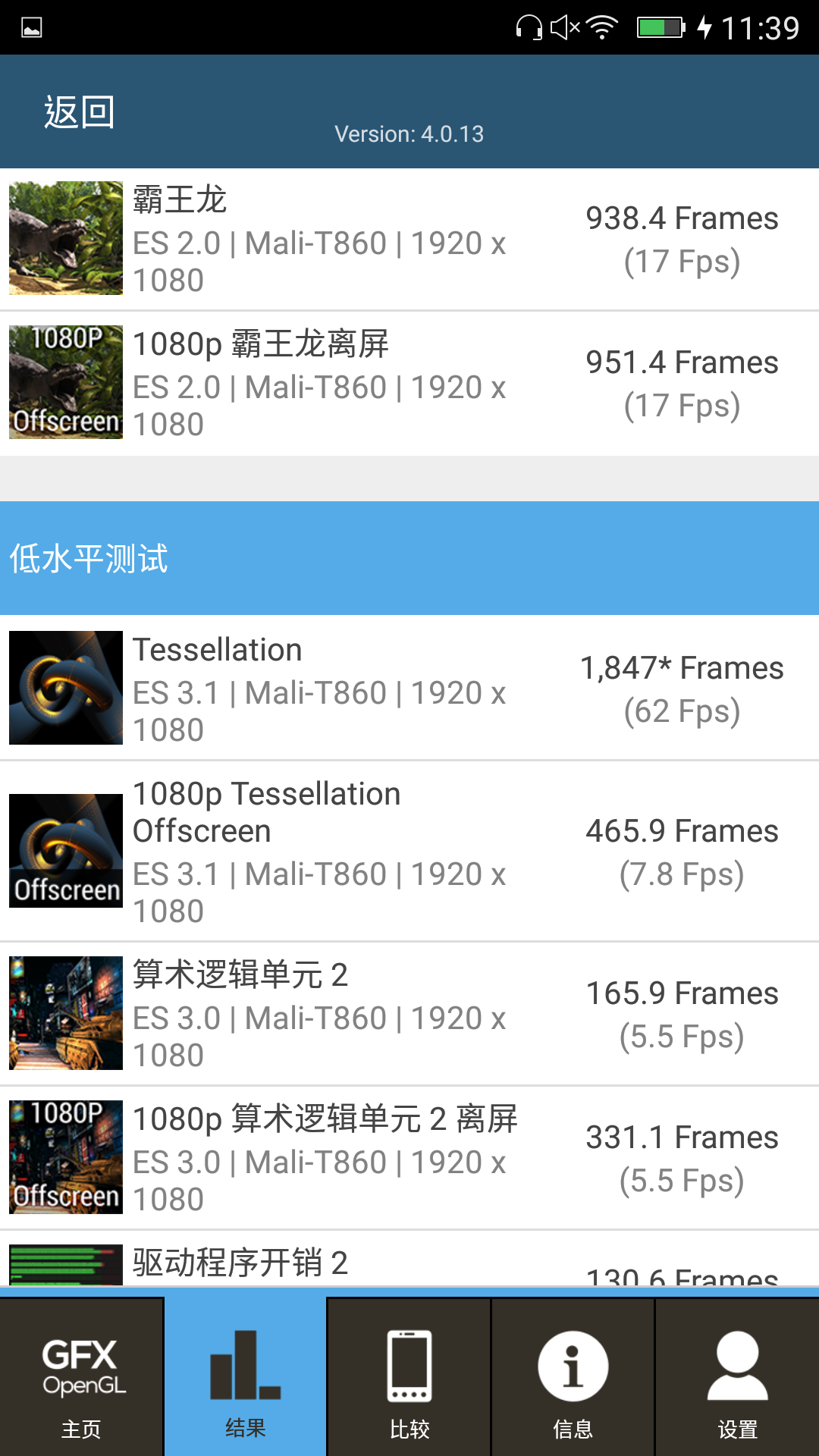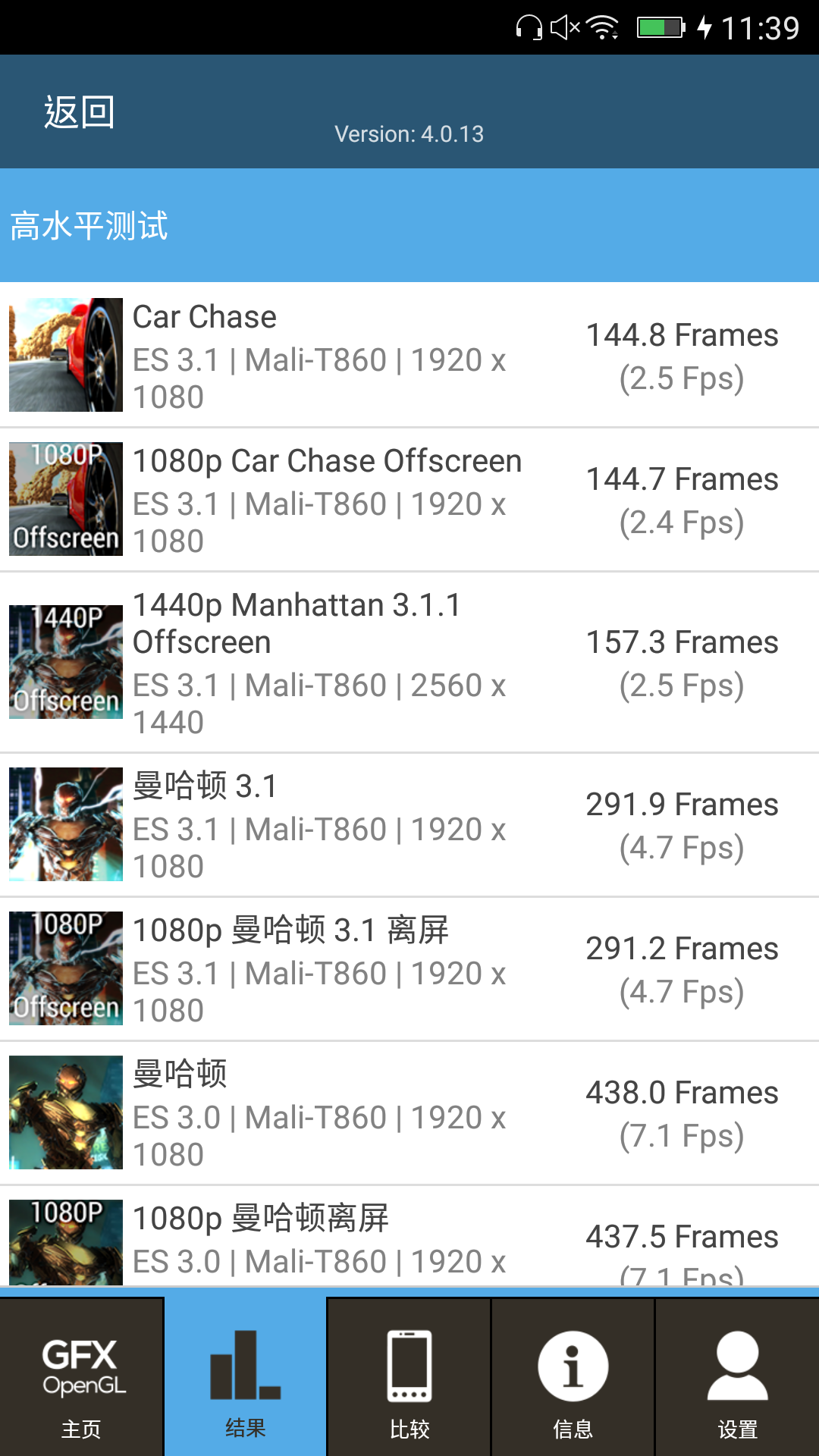 ▲GIONEE S9 透過 GFXBench v4.0.13 軟體測試分數一覽。