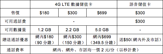 亞太電信新推出的預付卡儲值計有「4G 數據儲值卡」與「語音儲值卡」兩種。年底前購買「180 / 300 / 699 型 4G 數據儲值卡」,除了內含的 1.2GB / 2.2GB / 5.0GB 數據流量外,還加贈與儲值面額等值的網內通話費;加贈的網內通話費,可免費多打 90 / 150 / 349.5 分鐘的網內通話,讓消費者通話輕鬆無負擔,適合親友共同申辦。此外,300 元通話費的「語音儲值卡」,亞太電信也加贈 50 元通話費。