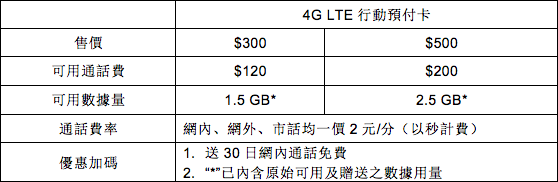 亞太電信 Gt 4G 今日(7/24)宣布即日起推出全新 4G LTE 行動預付卡,提供 300 元與 500 元兩種選擇,強調打破網內外及市話語音通話界線,即日起至 12 月底,均一價每分鐘只要 2 元(以秒計費),同時可享有 4G 上網(內含 1.5GB / 2.5GB 數據上網量),並且祭出年底前購買,立即加送 30 天網內通話免費,只要再購買數據儲值卡,加贈等額網內通話費,最高贈送網內通話約達 350 分鐘。