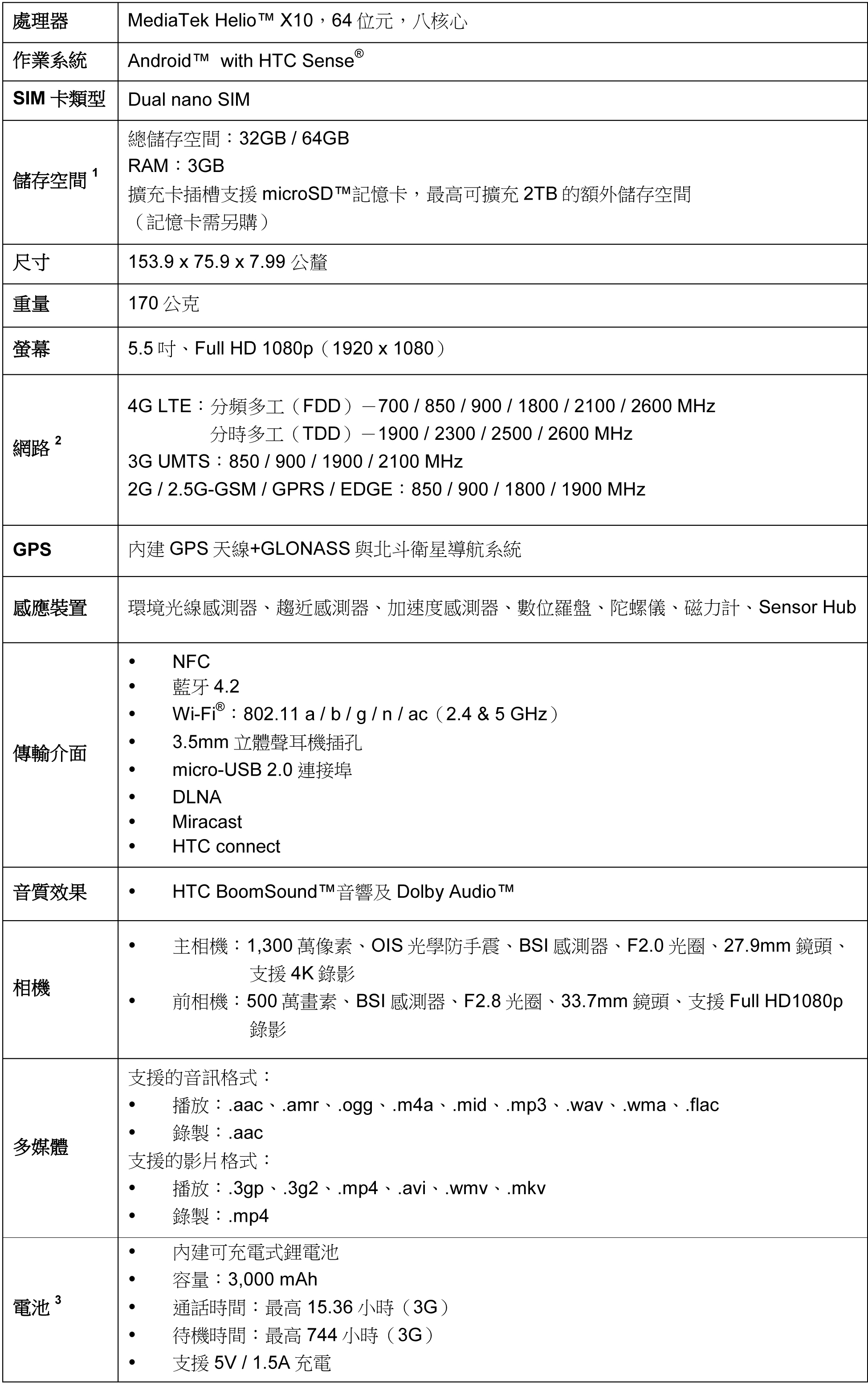 ▲HTC One X9 dual sim 規格表。(點圖可放大看原圖)