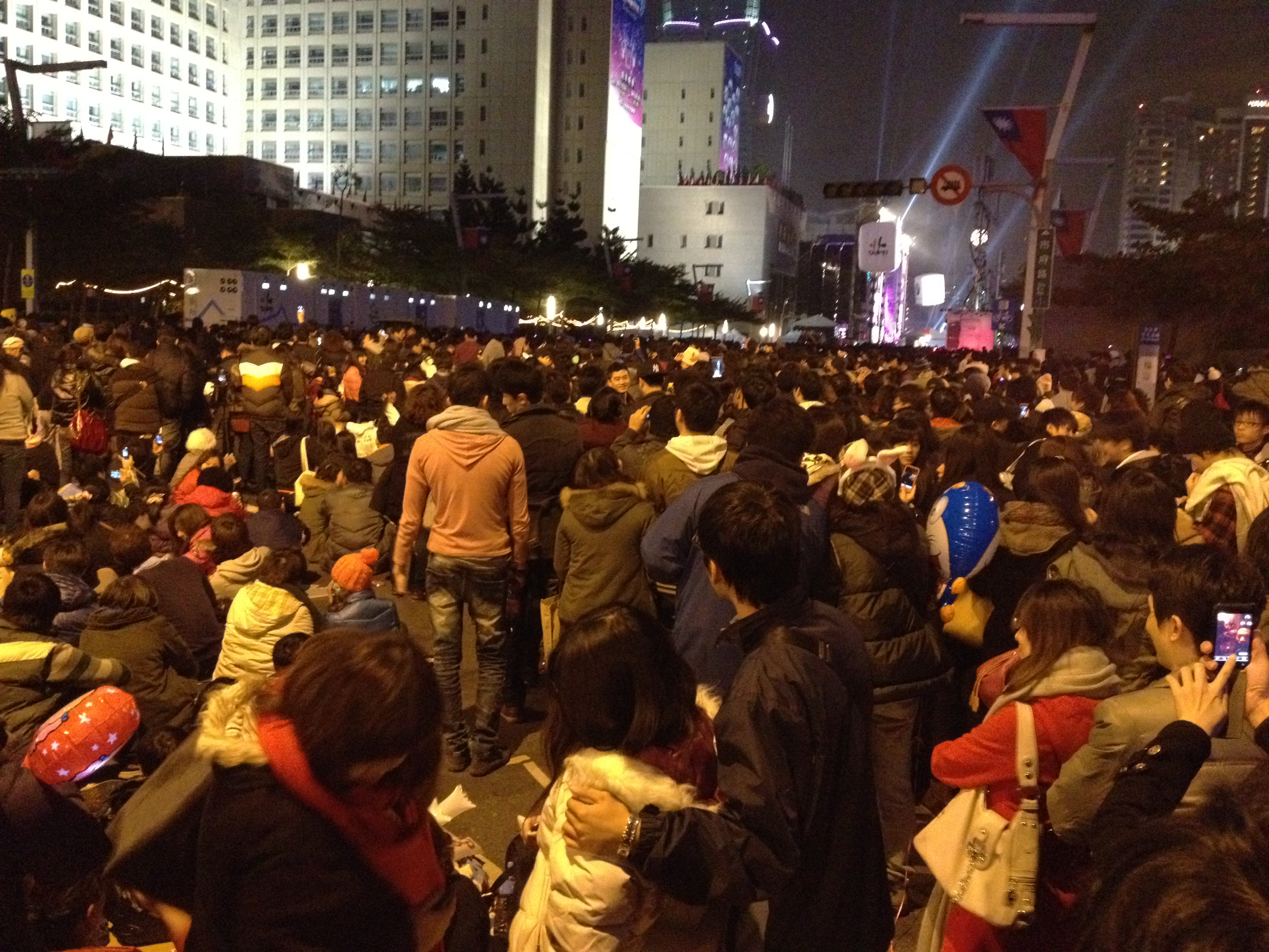 ▲吃飽以後,我們選在台北市政府前等煙火,還沒開始就已經水瀉不通嚕。(點圖可放大看原圖)
