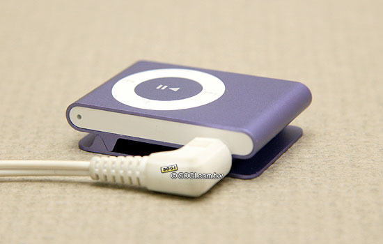 iPod shuffle 機身背後的固定夾,可將它夾在衣服、牛仔褲上,當在捷運上、等公車的時候,都是相當方便攜帶的隨身音樂裝置,而且也可當作身上的配件之一。甚至在進行慢跑等運動的時候,它也完全不會造成負擔。