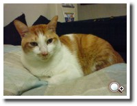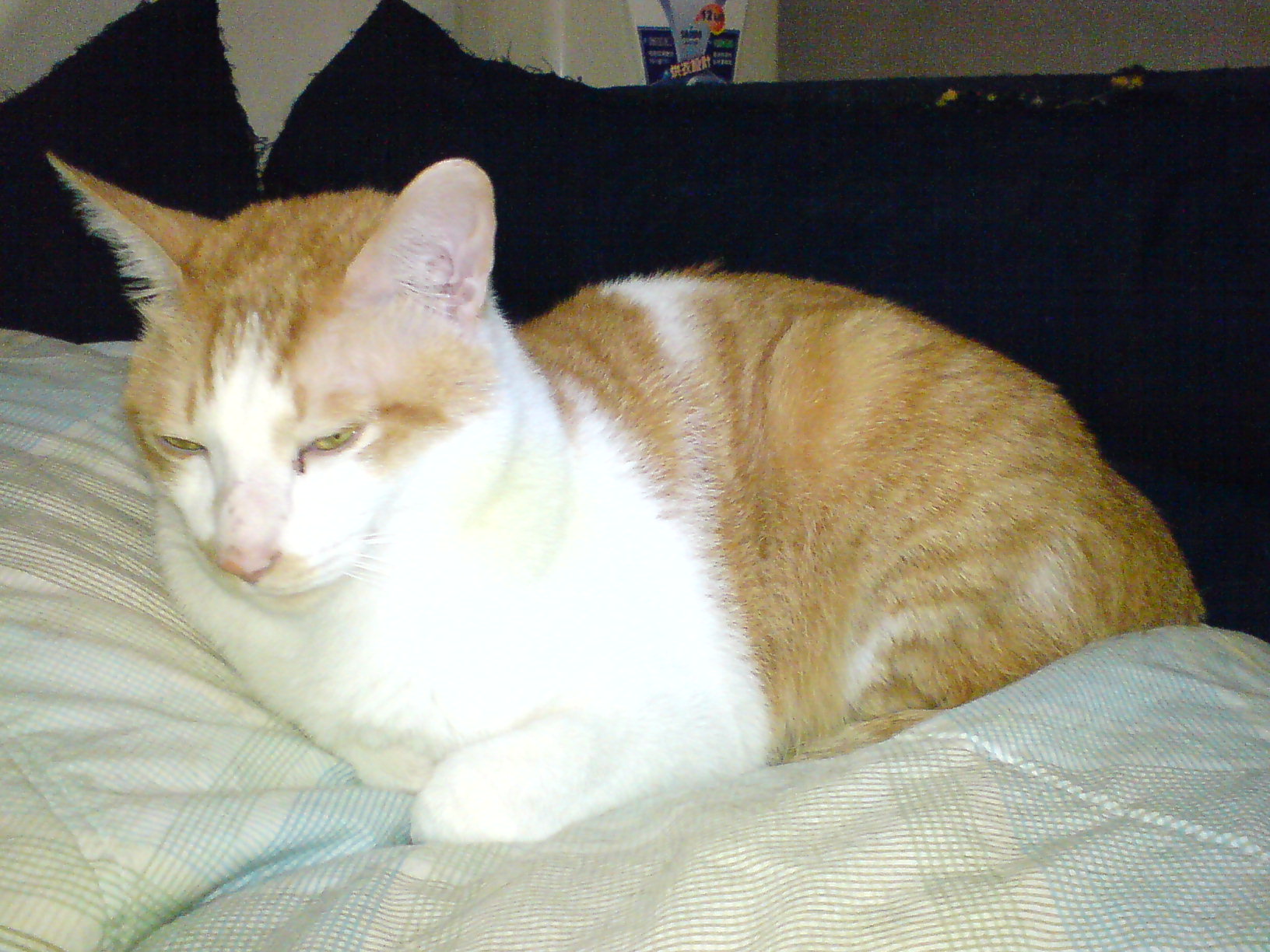 場景換到室內,晚間的室內燈光偏暗,拍攝貓咪在手機內預覽效果不錯,可是經由電腦放大出現油畫般的效果,銳利度明顯不足。同時間開啟閃光燈,閃光燈亮度與光線範圍都有涵蓋整隻貓,按下快門時會二次補強閃光。閃光燈補助的室內照片效果明顯,貓咪毛色與實體相似,屋內原有的光線也能明顯看出來,重點是除去油畫般的效果,照片比較細緻。