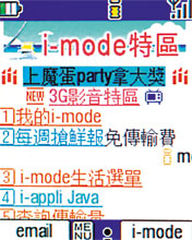 按下鍵盤上的「i」字鍵後,即可連結 i-mode 選單,選擇影音、遊戲、新聞及訂票等多元加值服。