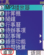 選擇欲設定於桌布的功能,按下手機左鍵,即可設定於主畫面;日後按下「中央控制鍵」即可快速選用已設定的功能。