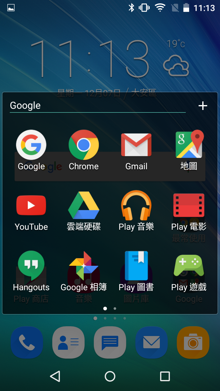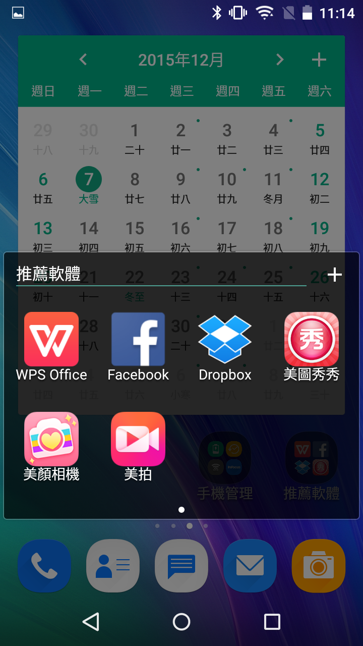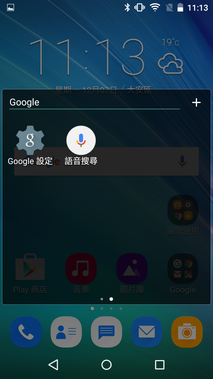 ▲長按 InFocus M535 桌面空白處可進入桌面調整功能,能進行快速加入小工具、調整桌布、任務管理等動作。用戶可在整理應用項目中建立自動篩選最新安裝或是自動選最常使用的檔案夾。