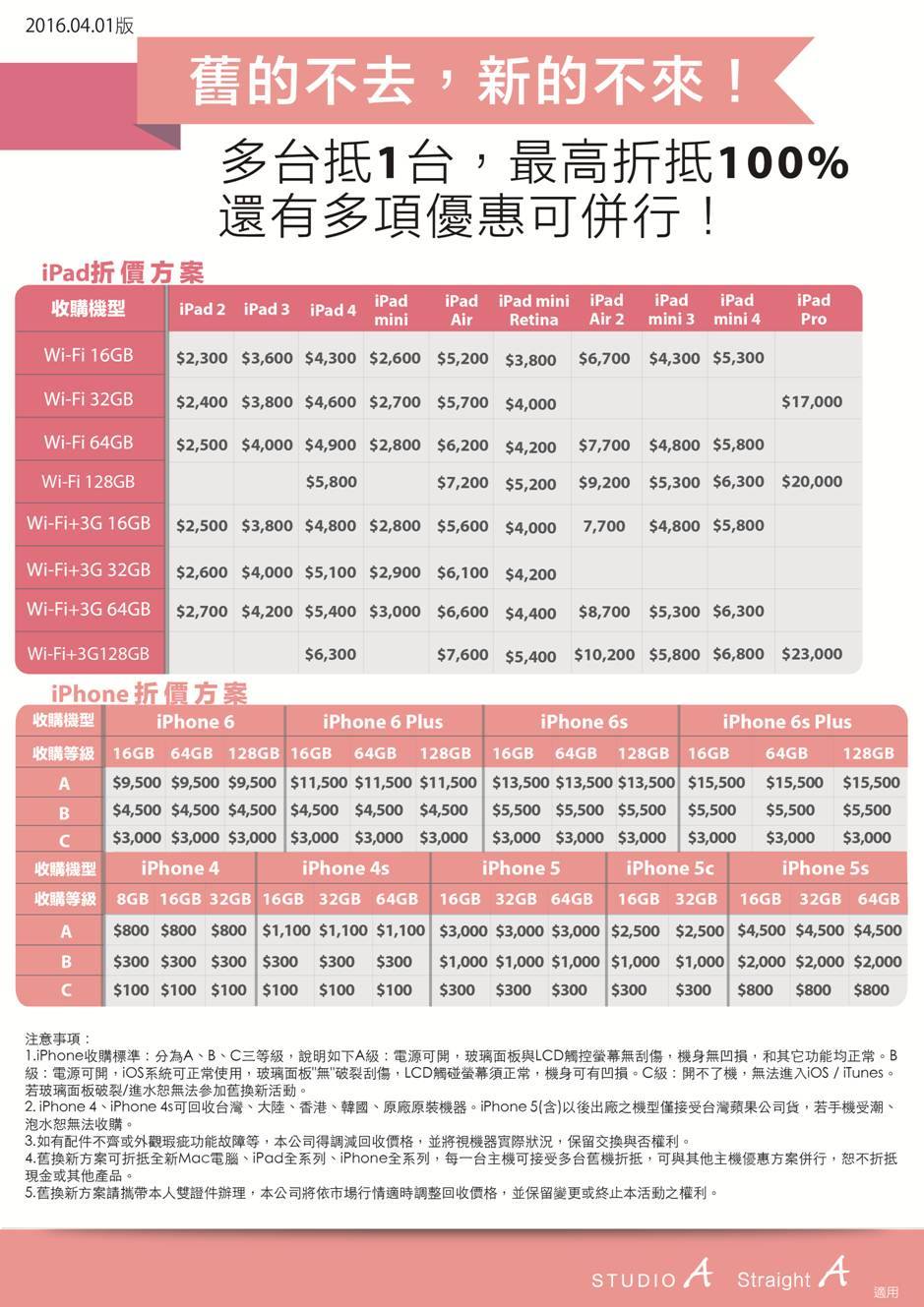 ▲STUDIO A 舊換新方案一覽。(點圖可放大看原圖)
