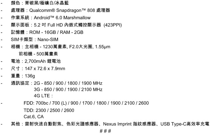 ▲Nexus 5X 規格一覽。(點圖可放大看原圖)