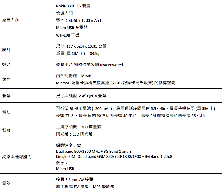 ![NOKIA 3310 3G版台灣上市日11/18 單機價1990 NOKIA 3310 3G版台灣上市日11/18 單機價1990]()