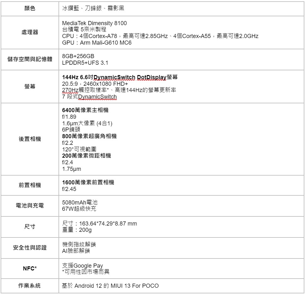 型號 | POCO F4 | POCO X4 GT | POCO C40 |